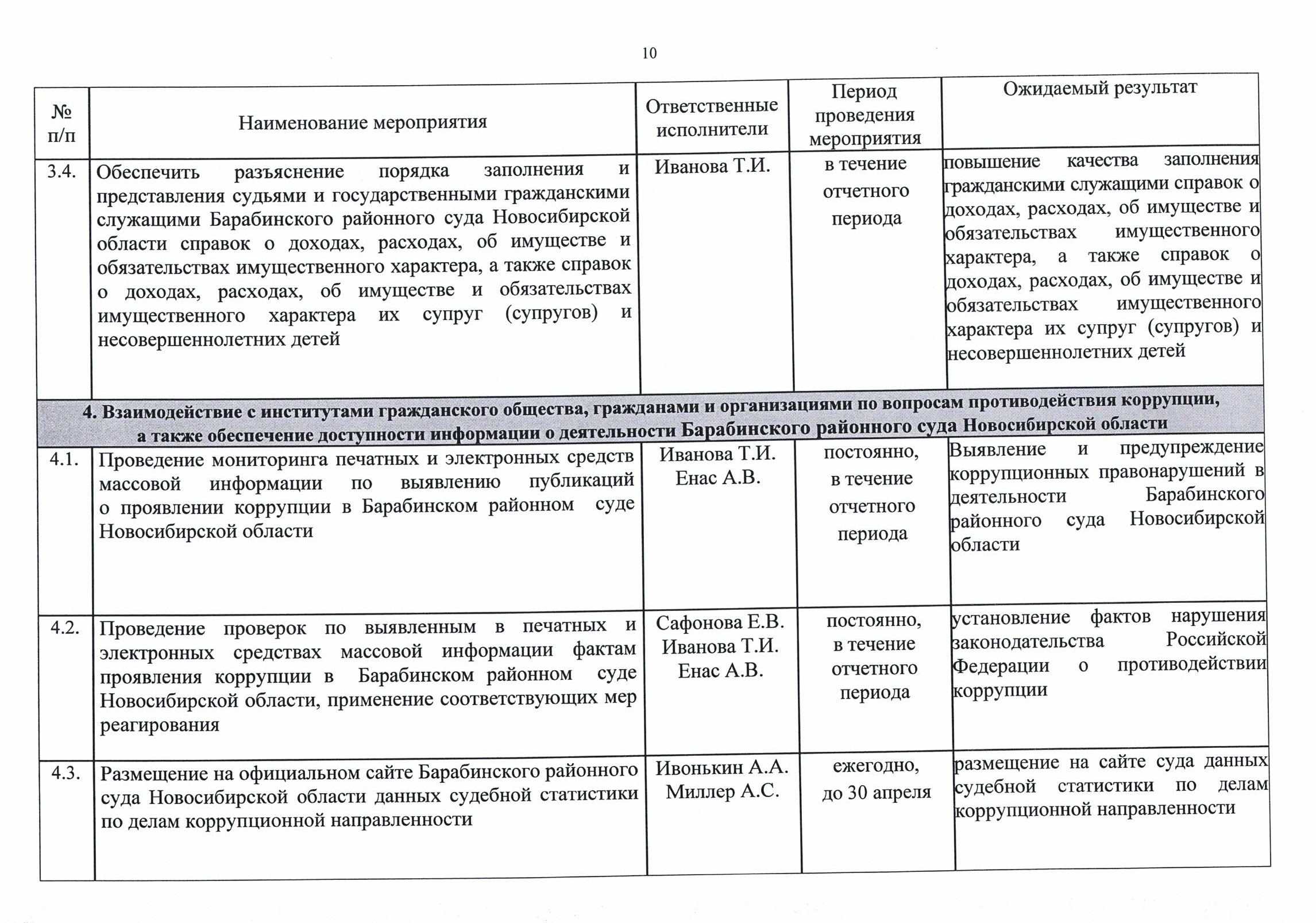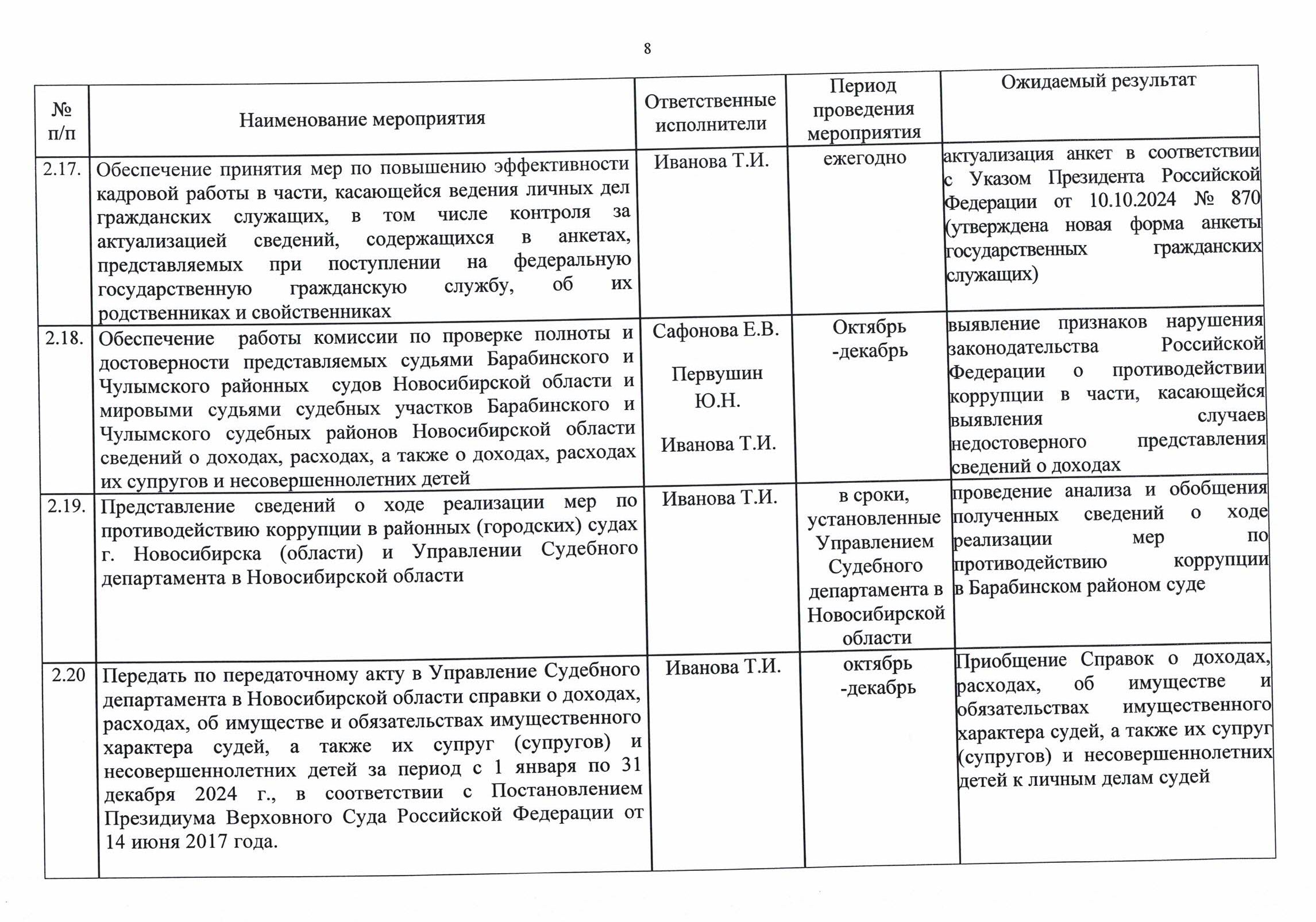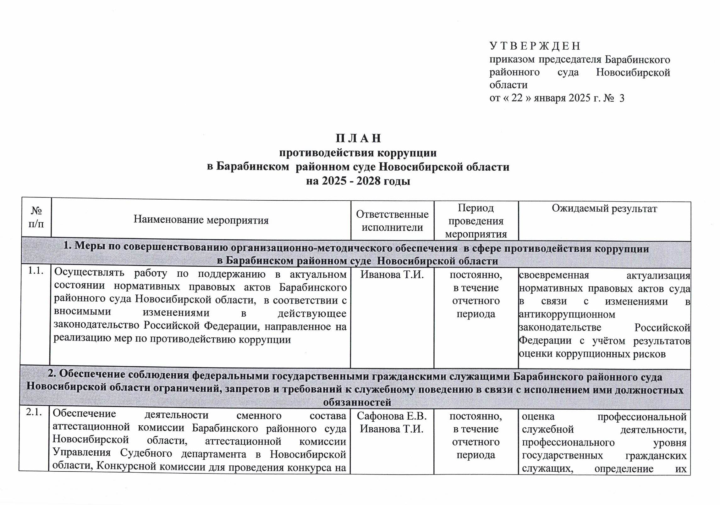П Л А Н противодействия коррупции в Барабинском районном суде Новосибирской области на 2025 - 2028 годы